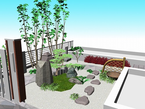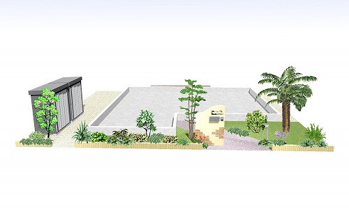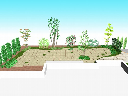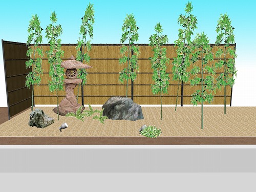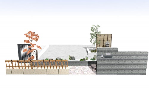 塩ビ垣で仕切る事により、遠近感で奥行きを感じられる様に設計させて頂きました。
